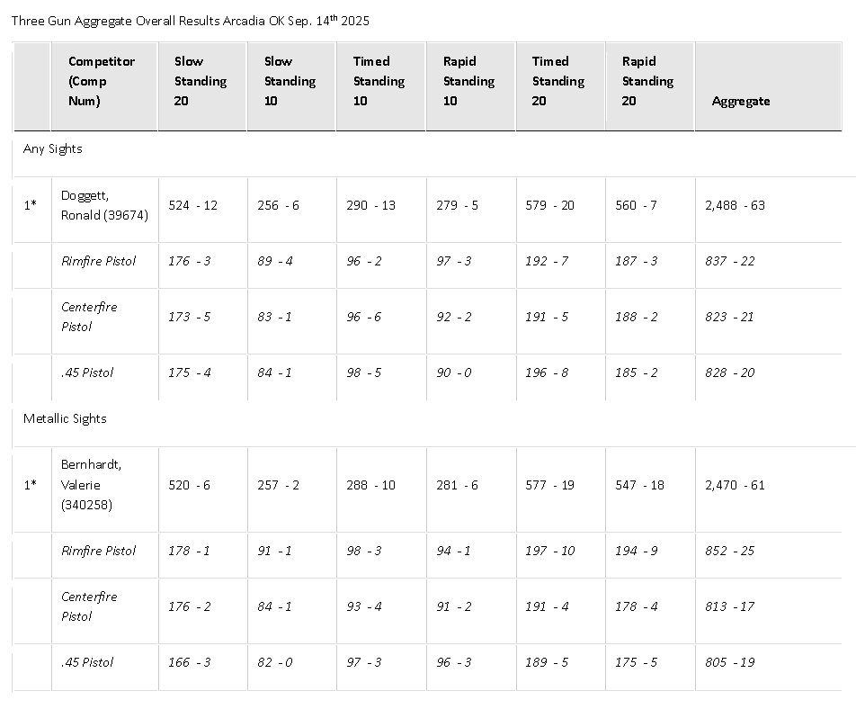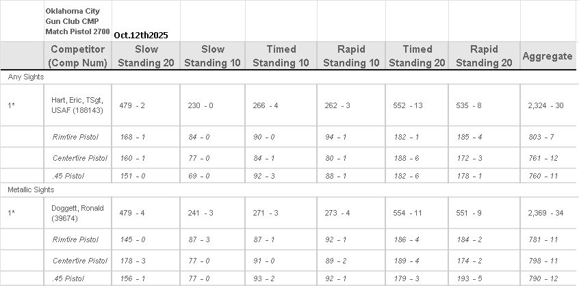 | OKLAHOMA CITY GUN CLUB, ARCADIA, OKLAHOMA, 15-16 OCT. 2011 | ||||||||