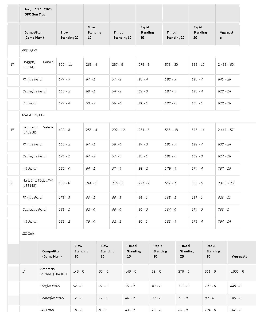 | .22 SC MATCH | CF SC MATCH | .45 SC MATCH | TOTALS | |||||
